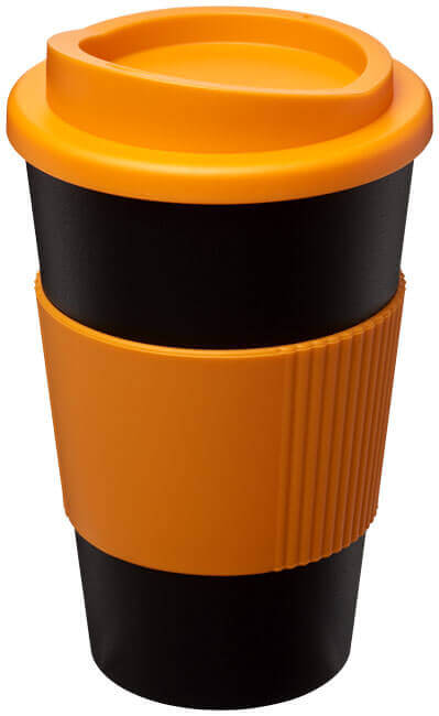 Americano® 350 ml Isolierbecher mit Schutzring. Doppelwandiger Isolierbecher mit Schraubverschluss und Silikon Schutzring. Das Fassungsvermögen beträgt 350 ml. Mischen und kombinieren Sie Farben, um Ihren perfekten Becher zu kreieren. Kontaktieren Sie den Kundendienst für weitere Farboptionen. Hergestellt in Großbritannien. Mindestabnahmemenge 50 Stück. PP-Kunststoff, Silikon.