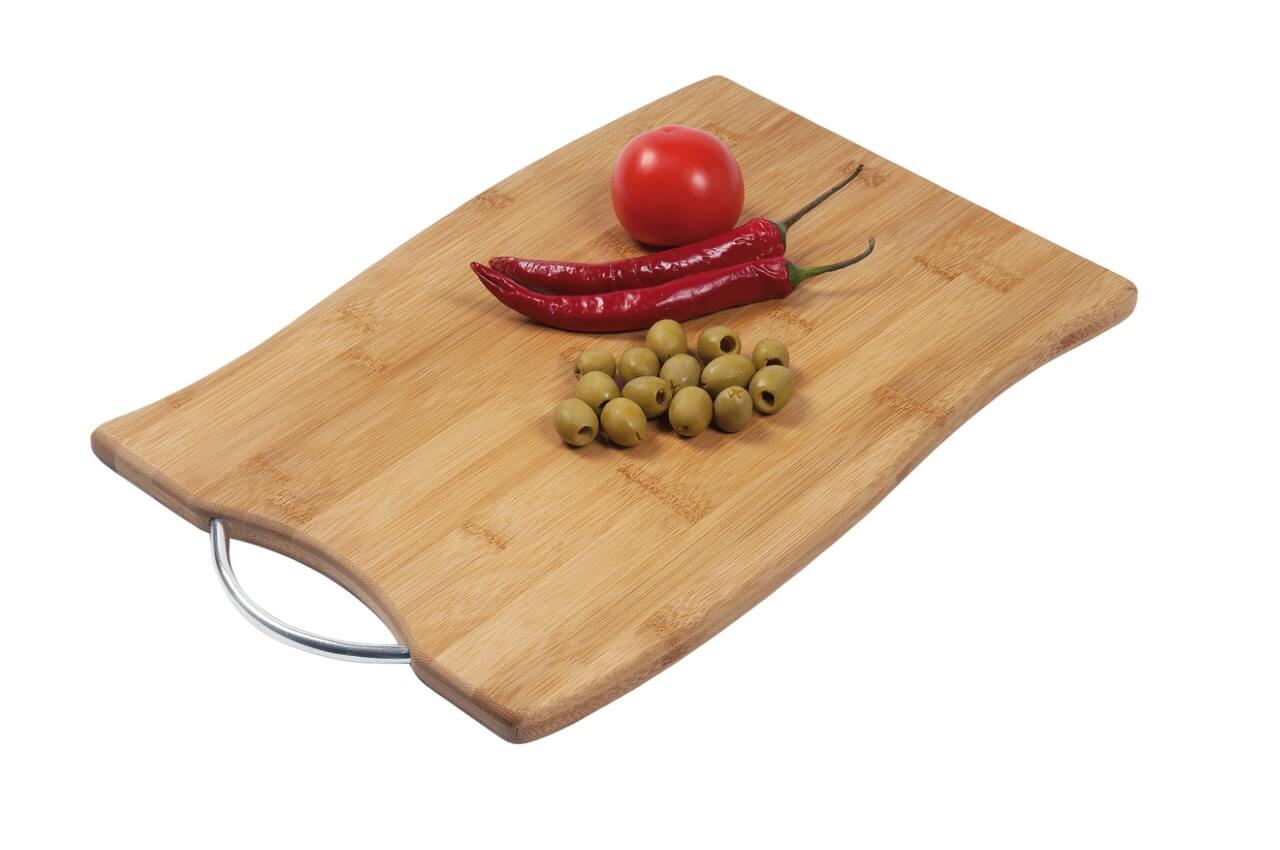 Schneidebrett BAMBOO-GRIP : mit praktischem Metallgriff, aus widerstandsfähigem Bambus