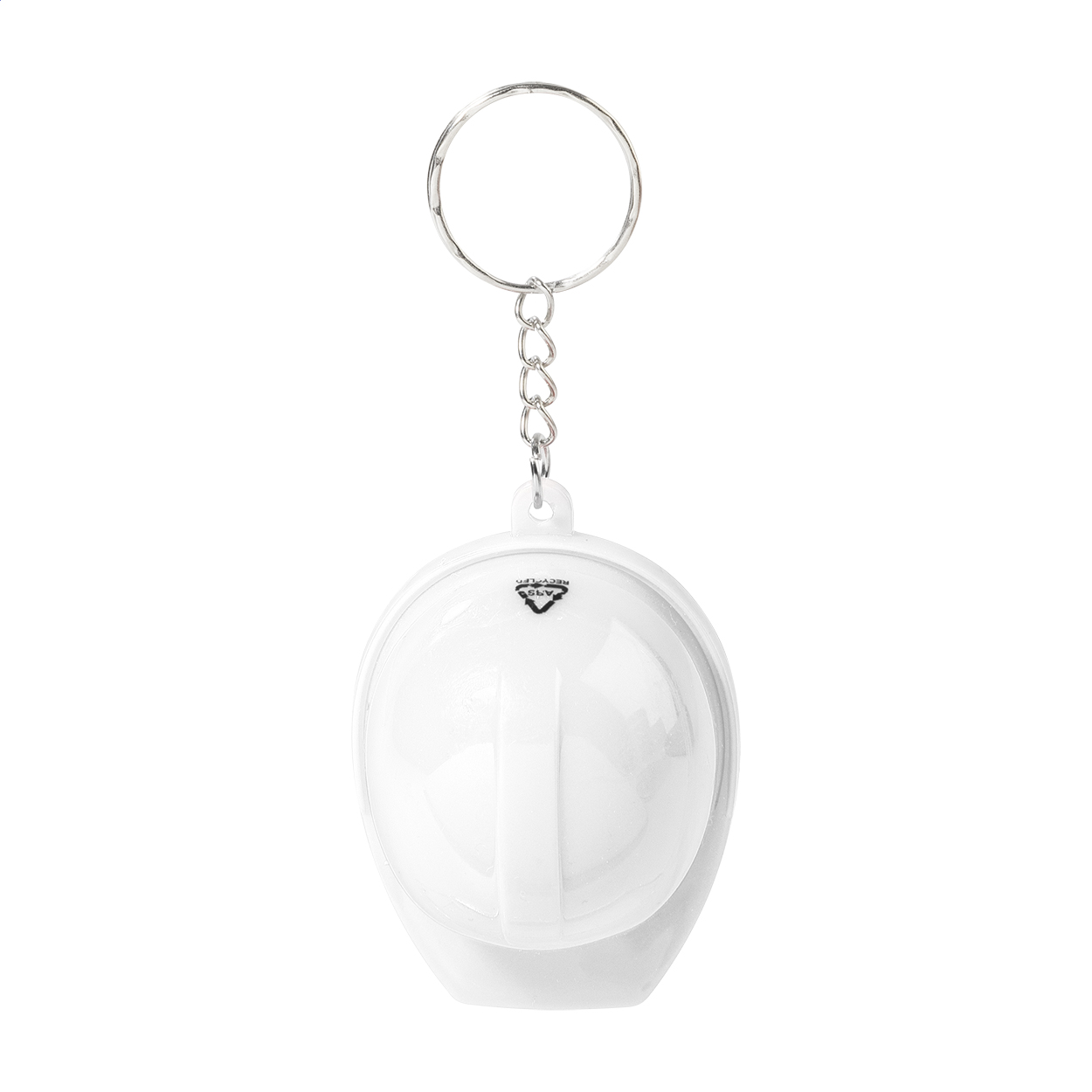 Schlüsselanhänger in Form eines Schutzhelms aus recyceltem ABS-Material mit integriertem Flaschenöffner. Neu. Für die Umwelt.