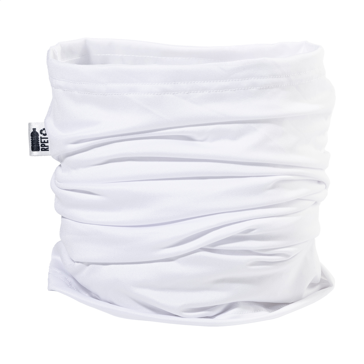 Individuell gefertigter, vielseitiger RPET-Schal mit vollflächigem Sublimationsdruck. 92 % RPET-Polyester und 8 % Elastan (185 g/m²), mit charakteristischem RPET-Label. Preis exkl. Druckvorbereitung. Mindestbestellmenge: 50 Stück. Neu. Umweltfreundlich. Kreativ. Materialgewicht: 185 g/m²