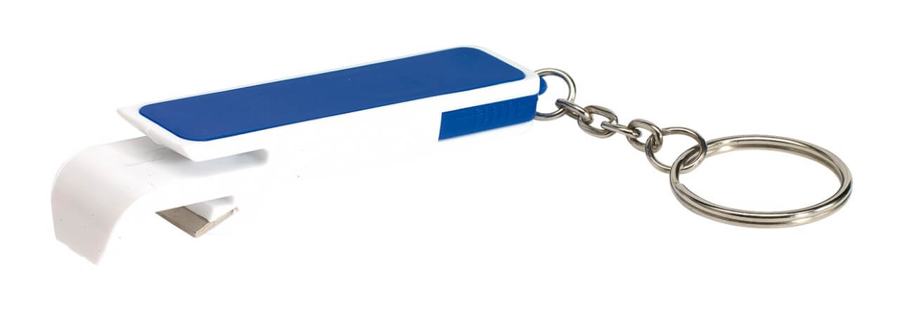 Schlüsselanhänger "Double Open" : mit ausziehbarem Halter für ein Smartphone, integriertem Flaschenöffner und Schlüsselring