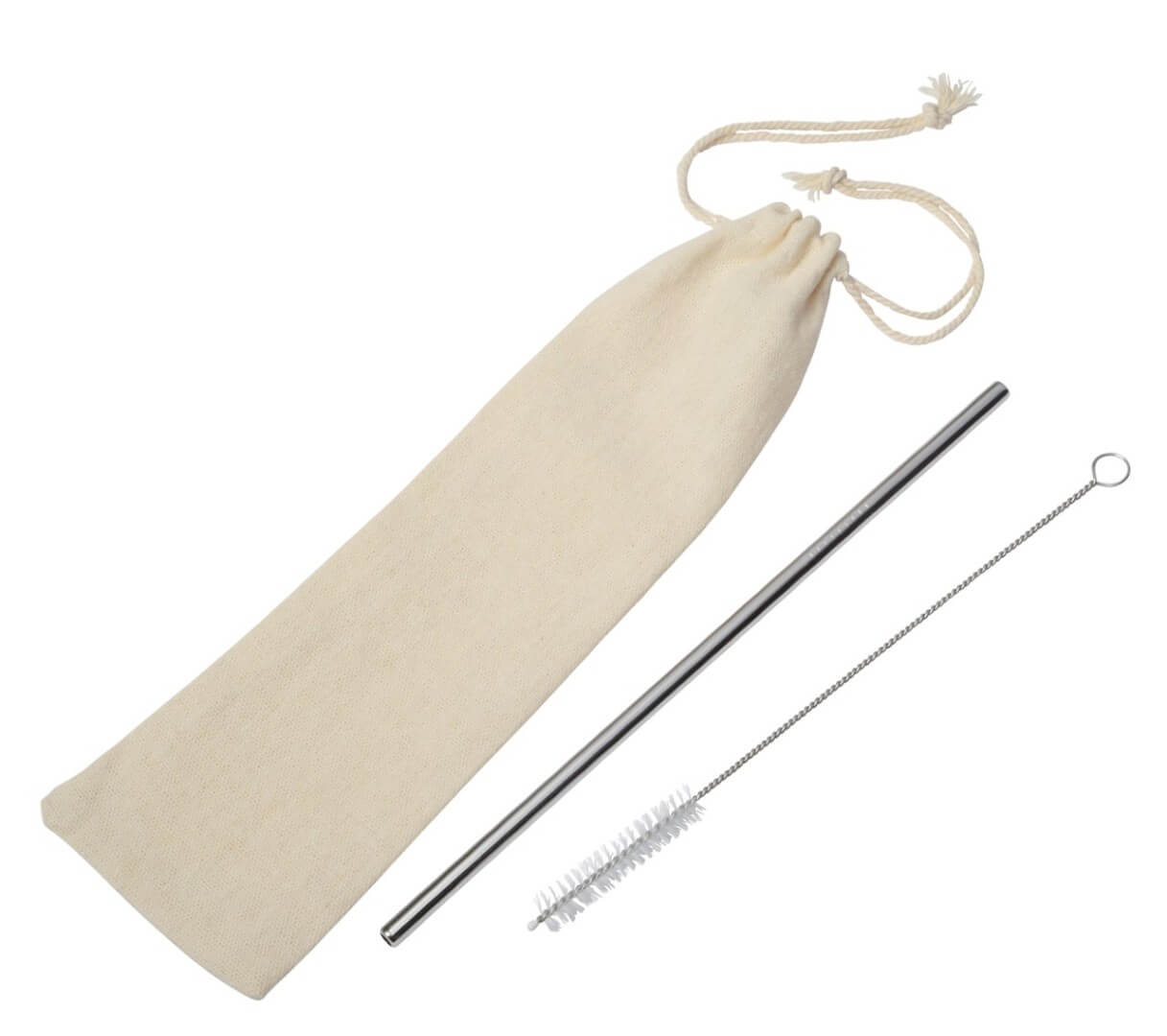 Paille en acier inoxydable DRINK ELEGANT : brosse de nettoyage incluse, dans un étui en coton écologique silver Stainless Steel / Cotton