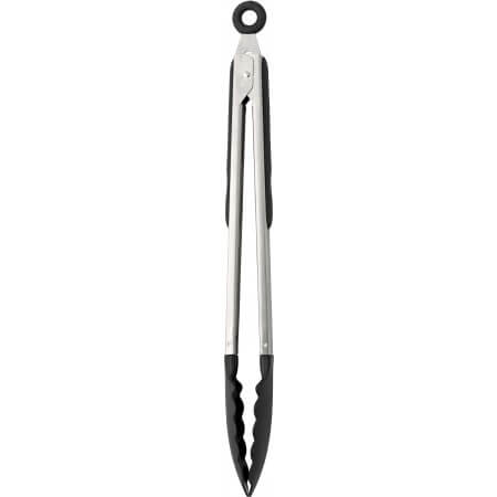 Food tongs with a nylon blade and TPR handle.