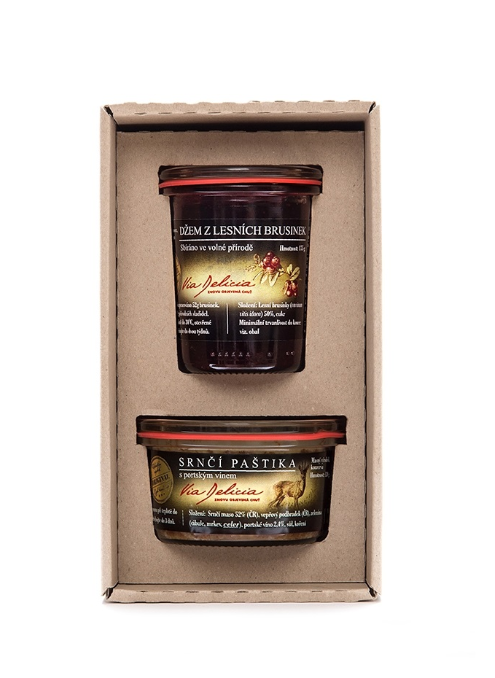 Preiselbeermarmelade 175 g, Hirschpastete 130 g.