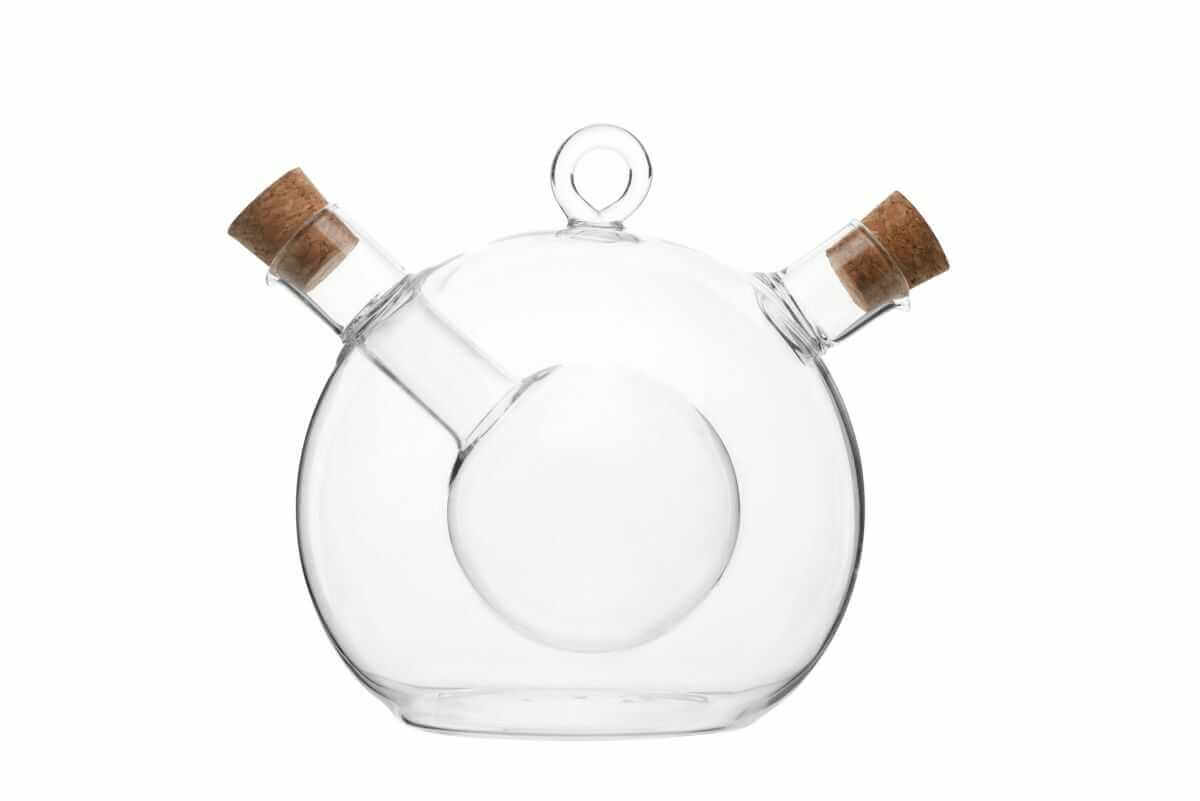 Glaskanne der Marke Vanilla Season für Küchengewürze. Sie hat zwei originelle separate Fächer, eines für Öl (450 ml) und eines für Essig (90 ml). Dank ihrer eleganten Form wird sie auf jedem Tisch gut aussehen. Sie ist aus Borosilikatglas hergestellt. Verpackt in einer Vanilla Season Geschenkbox.