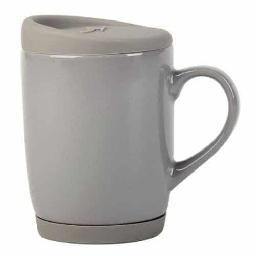 Keramikbecher EASY DAY mit abnehmbarem Silikonfuß und Silikondeckel für sicheren Halt und Transport, Fassungsvermögen ca. 350 ml, in weißer Box.