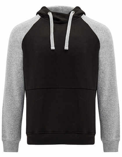 Zweifarbiges Unisex-Sweatshirt | Kapuze mit gekreuztem Kragen und Metallösen | Kapuze mit Single-Jersey-Futter | Kordelzug und Raglanärmel in Kontrastfarbe | Kängurutasche | 1x1-Rippstrick mit Elasthanbündchen an Ärmeln und Saum | Gekämmte Innenverarbeitung | Abreißetikett