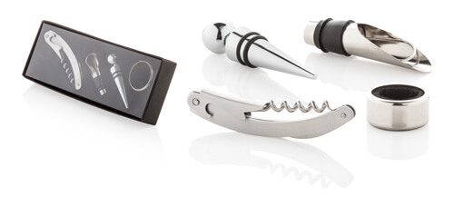 Weinset mit 4 Accessoires, in schwarzer Geschenkbox.