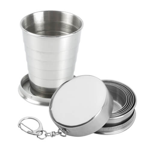 Teleskopbecher aus Metall, sehr flach zusammenlegbar für die Tasche; 70 ml.