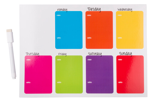 Magnet-Tafel für Notizen, inkl. Stift und Löschschwamm.