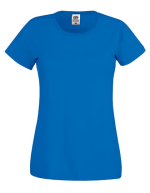 Rundhalsausschnitt mit gleichfarbigem Ausschnitt | Damenschnitt mit Seitennähten Hochdichte Strickware für besseren Druck Farbcode: # 0076AD 100% Baumwolle (97% Baumwolle / 3% Polyester)