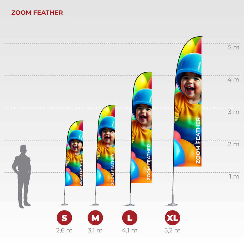Größenvarianten der Beachflag Feather: