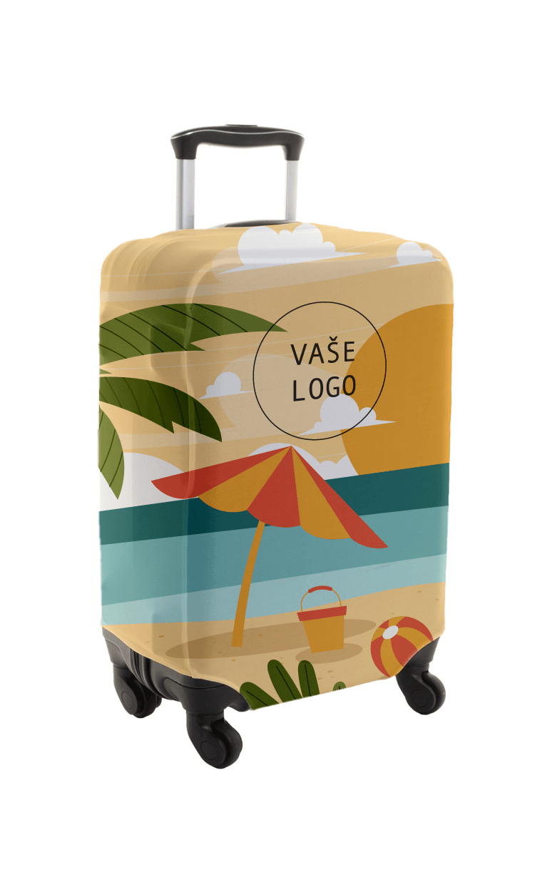Na zákazku vyrobený polyesterový poťah na batožinu so zapínaním na suchý zips. Vhodné pre stredné kufre do 42x62x26 cm. S celoplošnou sublimačnou tlačenou grafikou, cena nezahŕňa tlačovú prípravu. Min. mn.: 50 ks.