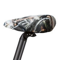 1 colour imprint on the top side included. White recycled PET saddle cover with white or black elastic band to fit most seats. Size: approx. 24x26cm.