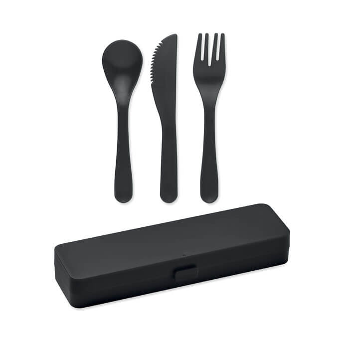 Wiederverwendbares Besteck-Set mit Messer, Gabel, Löffel im passenden Etui.Produktnavigation