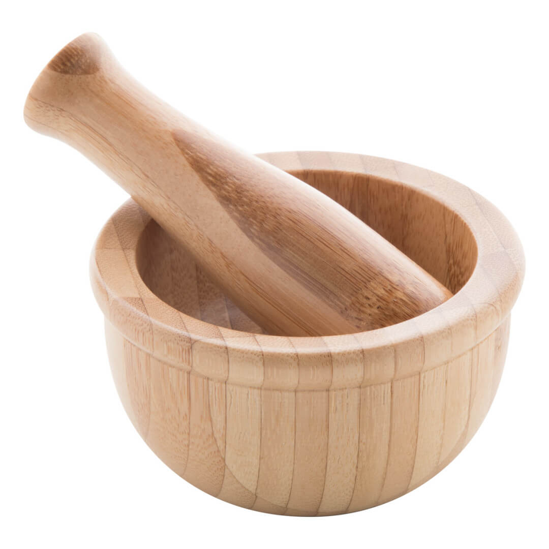 Mörser aus Bambus mit Stößel.