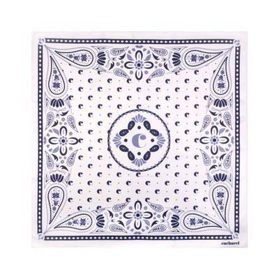 The "Alesia" scarf is adorned by a paisley inspired print. For this style, we wanted to play with graphical prints & pop colors, to give it a true contemporary feel. This scarf is made of vegan silk (Polyester twill). It size, 65X65 cm size makes it a very versatile accessory that can be worn in hundreds of different ways.