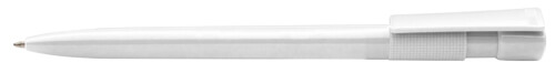 Druckkugelschreiber aus Kunststoff mit blau schreibender Mine.