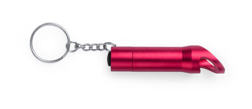 Mini Taschenlampe aus Aluminium mit 3 LED's, Flaschenöffner und Schlüsselring. Inkl. Knopfzellenbatterie.
