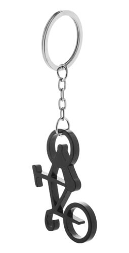 Aluminium Schlüsselanhänger in Form eines Fahrrades. Mit Flaschenöffner-Funktion.