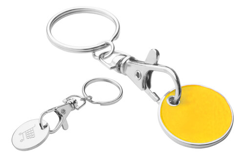 Münzhalter mit Einkaufswagenchip und Metallring. Münzengröße: ?24×2 mm.