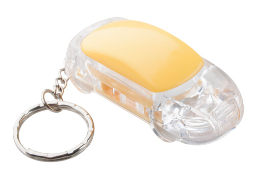 Schlüsselanhänger aus Kunststoff in Form eines Autos mit weißem LED Licht und Metallring. Lieferung mit Batterie.