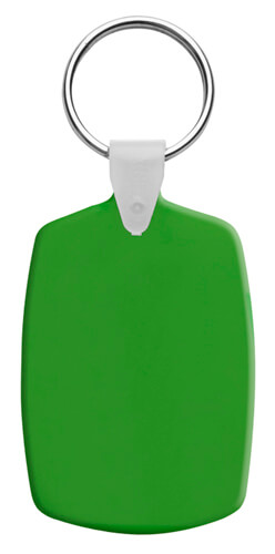 Schlüsselanhänger aus Kunststoff in einfacher Form, mit Metallring.