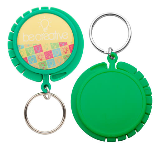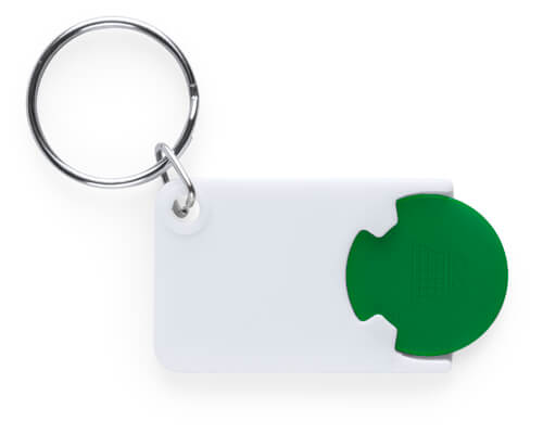Schlüsselanhänger mit farbigem Einkaufswagenchip aus Kunststoff.