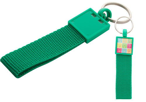 Schlüsselanhänger aus Kunststoff mit farbigem Band. Preis inkl. Doming. Mindestbestellmenge: 100 Stk.