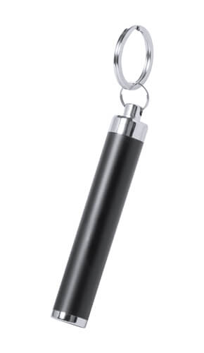Schlüsselanhänger aus Kunststoff mit eingebauter LED und Schlüsselring aus Metall. Lieferung mit 3 Knopfzellenbatterien.