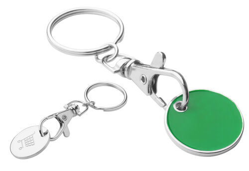Münzhalter mit Einkaufswagenchip und Metallring. Münzengröße: ?24×2 mm.