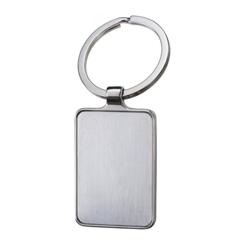 Ein eleganter Schlüsselanhänger aus Metall und einem inneren Holzteil, der sich perfekt für die Gravur Ihres Logos eignet.