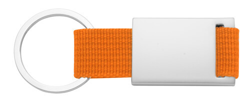 Schlüsselanhänger aus Metall und Polyester.