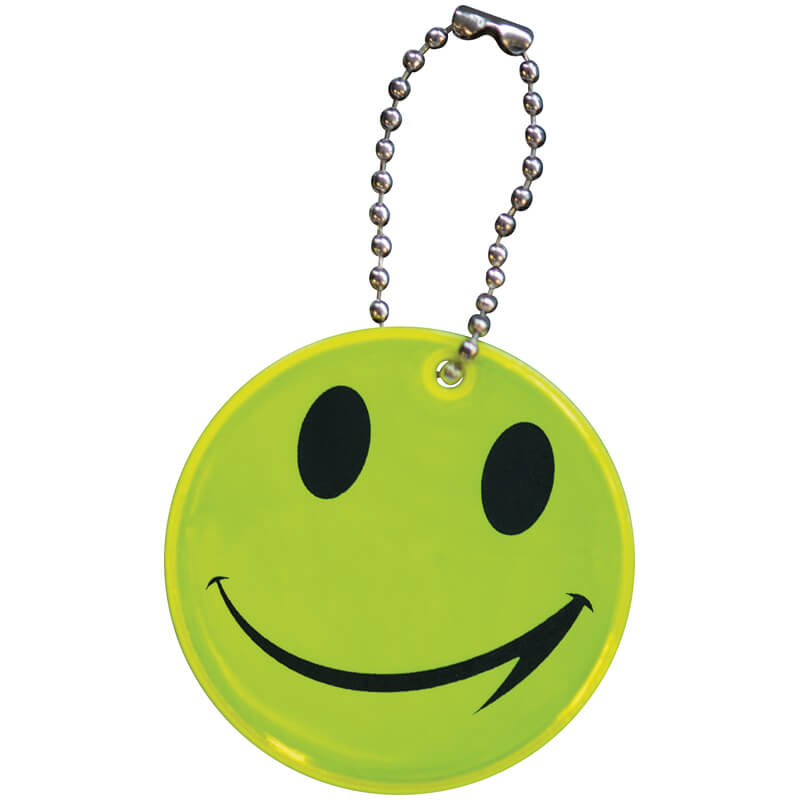 Reflektierender Smiley-Anhänger aus PVC. Geeignet zum Befestigen an Taschen oder Rucksäcken.