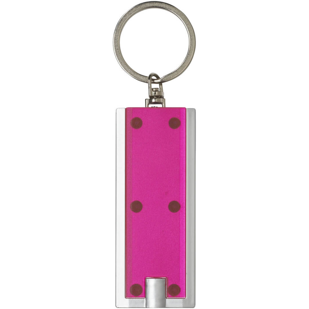 Schlüsselanhänger aus Kunststoff mit eingebauter LED und Schlüsselring aus Metall. Lieferung mit 3 Knopfzellenbatterien.
