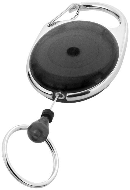 Farbiger Karabiner mit Metallring.