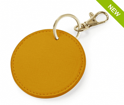100% Polyurethan (Lederoptik), feines Saffiano, glänzender Metall-Schlüsselclip, Maße: 6x8 cm, max. Druckfläche: 4,5x4 cm