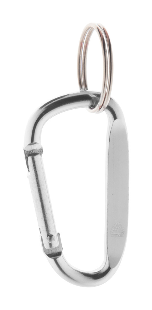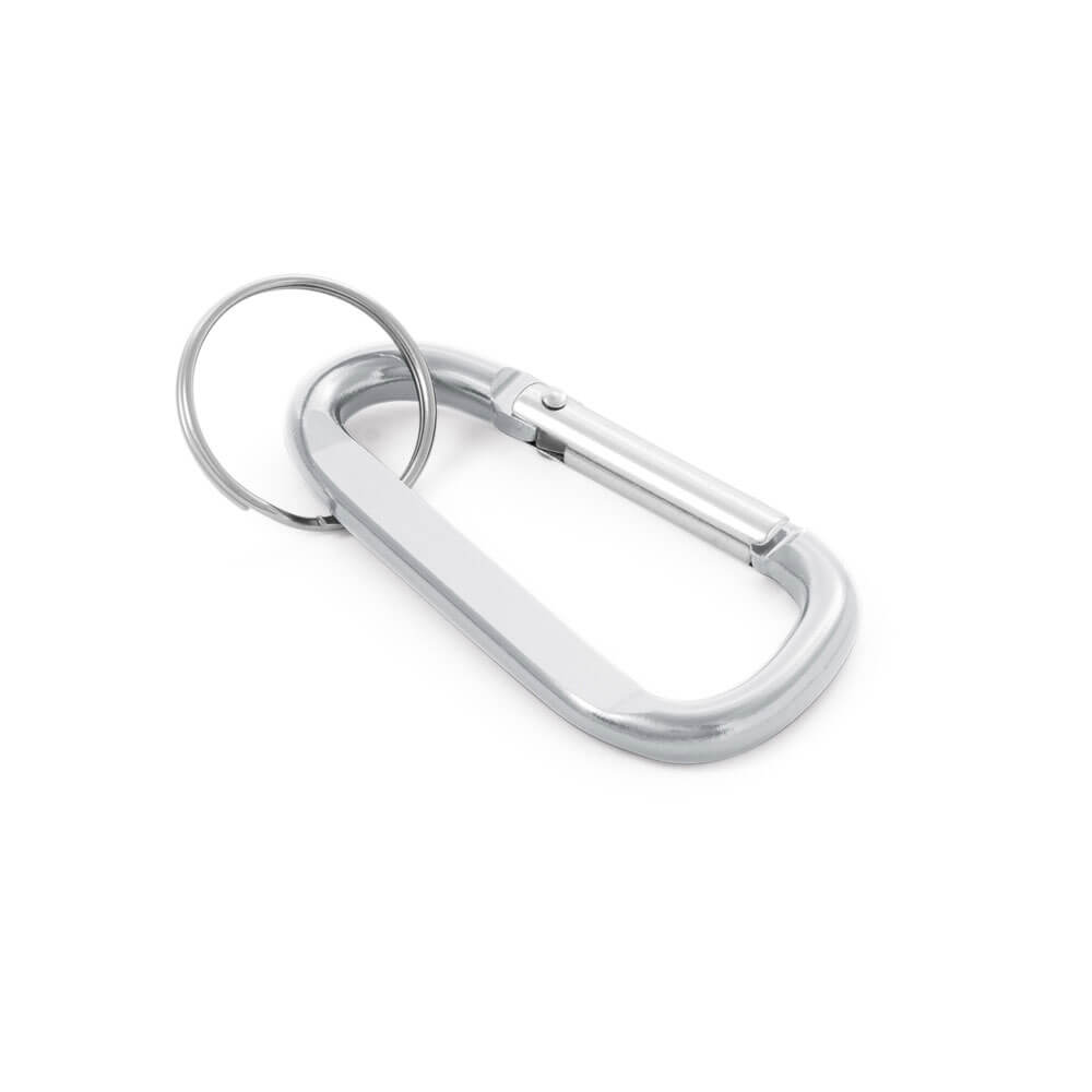 Karabinerclip aus Aluminium, mit Schlüsselringanhänger und flachen Bereich für die Personalisierung. Nicht zum Klettern geeignet.