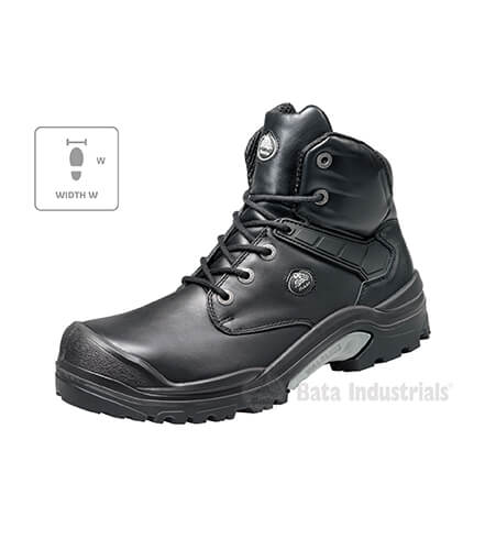 bezpečnostná obuv S3, ochranná oceľová špica, protiprepichová ocelová stielka, SRC - protišmyková podošva - duálny PU, E - absorpcia energie v oblasti päty, FO - odolná palivovému oleju, WRU - vode odolná, A - antistatická, certifikácia DGUV 112-191 Vrchný materiál - hladká vodeodolná koža/textil, podšívka - priedušná