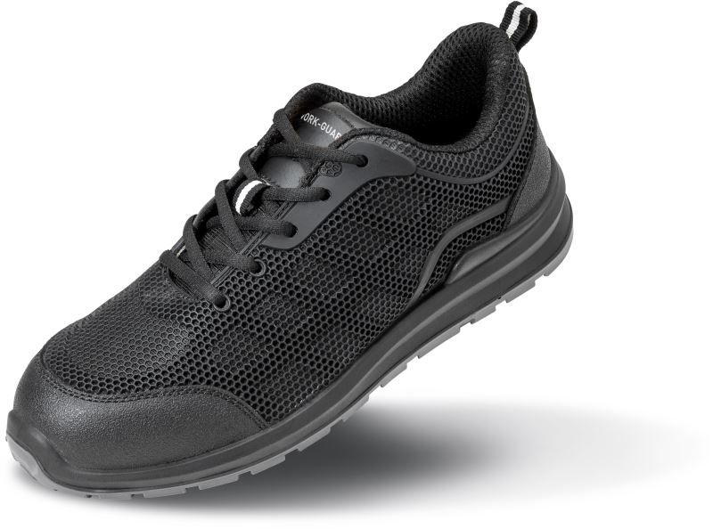 Obermaterial - Netzstoff mit FITFRAME®, Futter - atmungsaktiv, Sicherheitsschuhe S1P, Zehenschutzkappe aus Kunststoff - Fiberglas, flexible, durchtrittsichere FAP®-Zwischensohle, anatomisches Fußbett comfit® AIR footbed, extrem leicht, SRA - rutschhemmende Sohle - Gummi/Zwischensohle IMPULSE.FOAM®, E - Energieaufnahmevermögen im Fersenbereich, FO - Kraftstoffbeständigkeit, HRO - verhalten gegenüber Kontaktwärme (Wärmebeständigkeit bei 300 °C), ESD - elektrostatisch ableitfähige Schuhe, A - antistatisch, metallfrei, Zertifizierung DGUV 112-191.