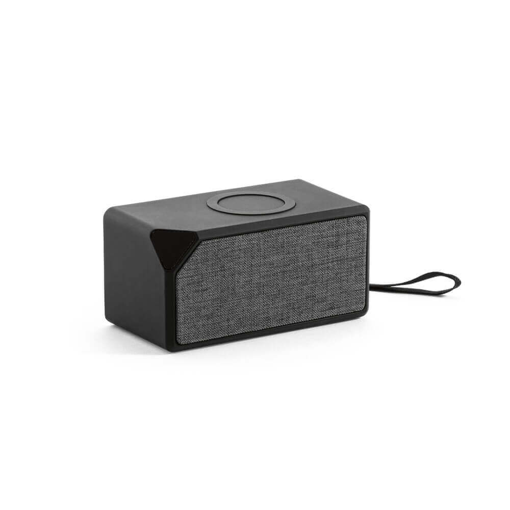 ABS-Lautsprecher mit Gummi- und Stofffront. Dank seines ausgeklügelten Designs hat dieser Lautsprecher eine Autonomie von bis zu 2 Stunden, mit Bluetooth 5'0-Übertragung und 3 W Leistung. Er verfügt außerdem über eine kabellose Ladefunktion mit 5 W Leistung, 5 V/2 A Eingang und einem 300 mAh-Akku. Ein Micro-USB-Ladekabel ist im Lieferumfang enthalten. Wird in einem Geschenkkarton geliefert. 108 x 56 x 54 mm