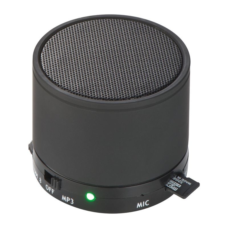 Kabelloser Lautsprecher RAGTIME: Musikleistung 3 Watt, ca. Reichweite: 10 m, Kopplung mit Mobiltelefon, kabellosem MP3-Player, Tablet, etc., Ladekabel (Kabellänge ca. 50 cm, USB Typ C), Freisprechfunktion, Leistung: 5V/0,5A, integrierter Akku mit 800mAh, rutschfester Standfuß.