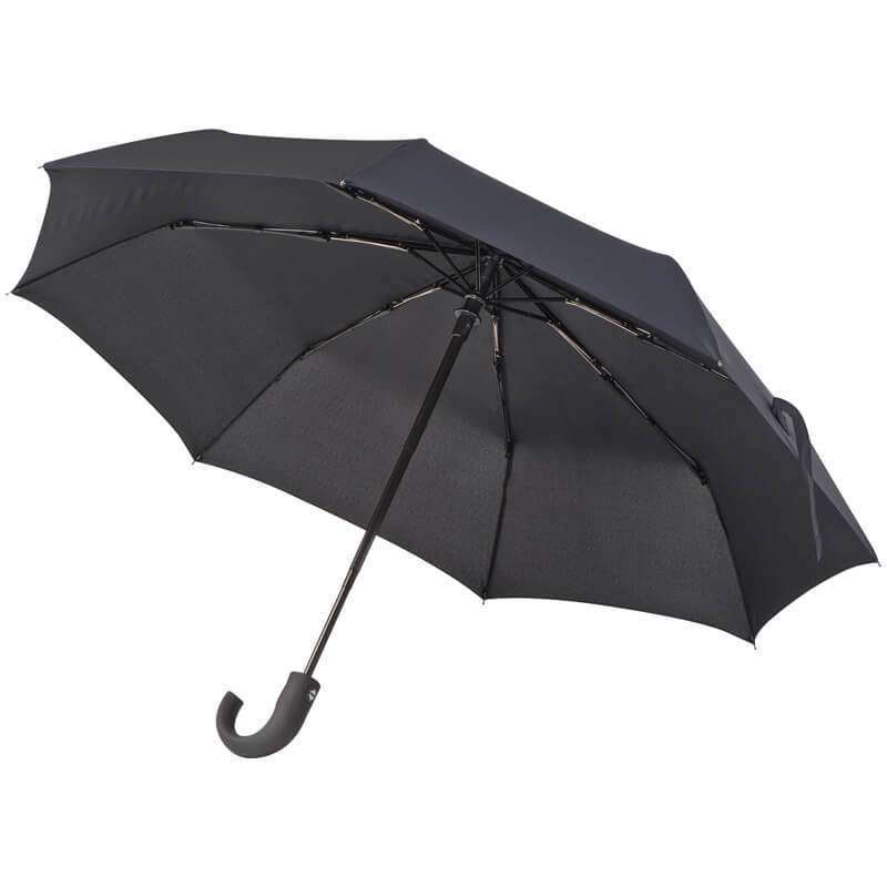Automatik-Windproof-Herrenfaltschirm "Mister" : 2-teiliger Metallstock, Metallspeichen und -tips, Kunststoffgriff, Polyester-Pongee-Bespannung, Schließband mit Klettverschluss