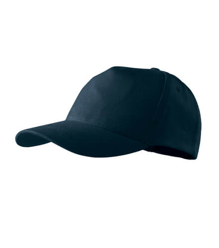 5 Panel Baseball Kappe mit Klettverschluss; Material: 100% Baumwolle.