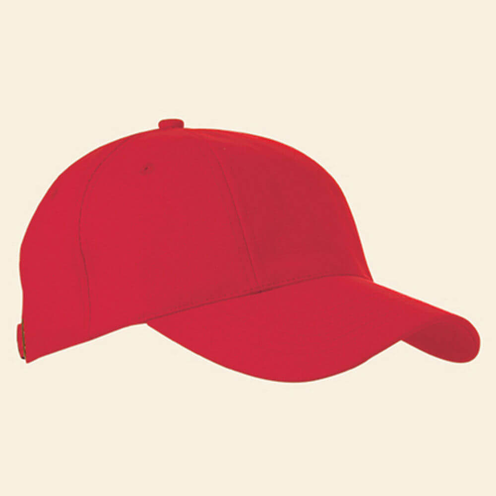·280 g/m² ·100% Baumwolle ·6-teilig ·Flache schnittige Form ·Verstärktes Stirnteil ·Genähte Luftösen ·6-fach gesteppter, vorgebogener Schirm ·Verstellbar durch Klettverschluss ·Leicht umzuetikettieren.