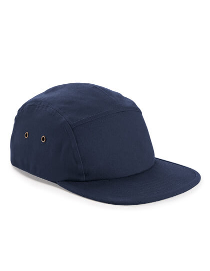 100% Baumwolle (kbA), 5-Panel-Design, weicher, unstrukturierter Scheitel, flache Silhouette, passender Stoffbandverschluss mit dreifacher Steckschnalle, abreißbares TearAway-Tag für einfaches Rebranding