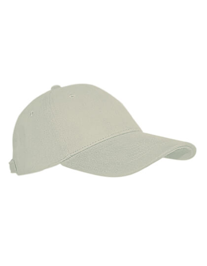 ·100% Baumwolle (Drill) ·5-teilig ·Stirnteil nahtlos ·Luftösen ·6-fach gesteppter Sandwichschirm ·Verstellbarer Klettverschluss.