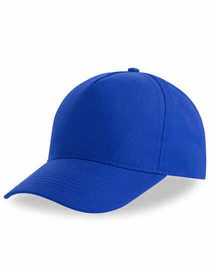 5-Panel-Baseballkappe. Material: 200g/m², 100% recycelter Polyester-Twill. Leicht gewölbter Schirm, genähte Ösen, Klettverschluss. Größen: Einheitsgröße