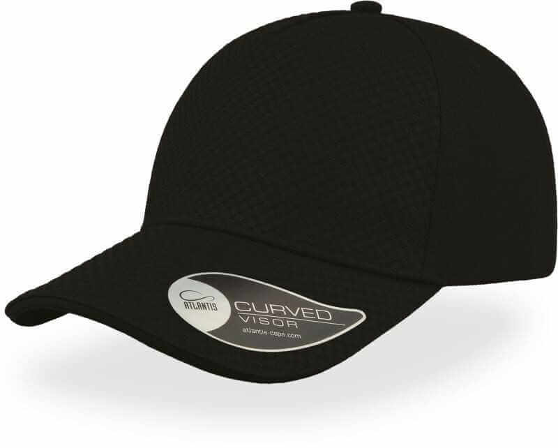 100% Polyester (75D), leichtes Material, schnelltrocknend und feuchtigkeitsableitend, lasergeschnittene Belüftungsöffnungen für bessere Atmungsaktivität, weiches Schweißband, verstellbares Stretchband, flacher Schnallenverschluss, TearAway-Etikett für einfaches Rebranding