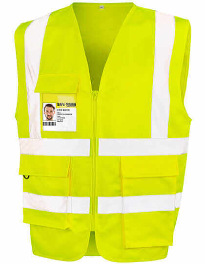 Gelb - EN ISO 2013+A1:2016 Klasse 2 / UK 2019 S1696 Anhang 35 der Verordnung 38; Marineblau und Schwarz - nur für bessere Sichtbarkeit | Strategische Platzierung der Streifen am Körper für volle Schulterdekoration und LBP-Taschen | Extra lange Tasche geeignet für Kontrollgeräte | Taschen mit Klettverschluss | Gefütterte Kanten in passender Farbe | Doppeltasche und Ausweistasche | Reißverschluss | Großzügige Größe | Aufhängeschlaufe | D-Ring | Hersteller garantiert reflektierende Eigenschaften gemäß EN-Norm für 25 Waschgänge!